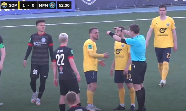 И тут на 61-й минуте у «Мурома» был удален за две желтые карточки один из оплотов обороны и капитан команды высоченный Дмитрий Зинович.