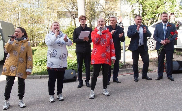 Сегодня во дворе дома №42 по улице Диктора Левитана артисты душевно поздравили ветерана Владимира Васильевича Коробчевского. Он слушал поздравления и выступления, стоя на балконе. Вместе с ним участниками мини-концерта стали и жители соседних домов. Прозвучало несколько композиций, в том числе легендарная песня “День Победы”.