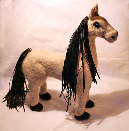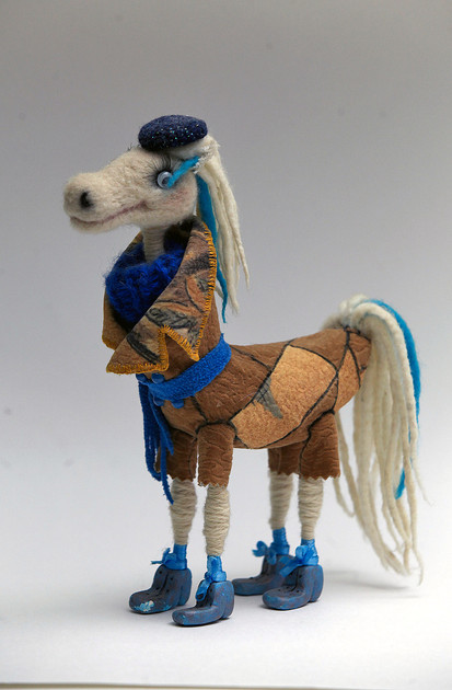 Теперь и вы знаете, как выглядит этот мем. Голова и хвост – из шерсти, тело – из фольги, ноги – из проволоки, ботинки – из глины, ну а пальто – из кусочков мебельной ткани. Ироничный образ дополняет кокетливая беретка. Не конь, а красавец!