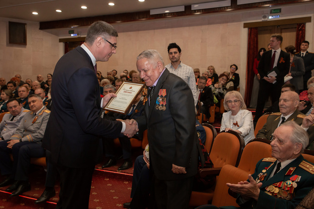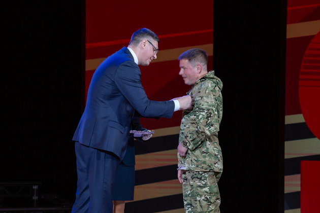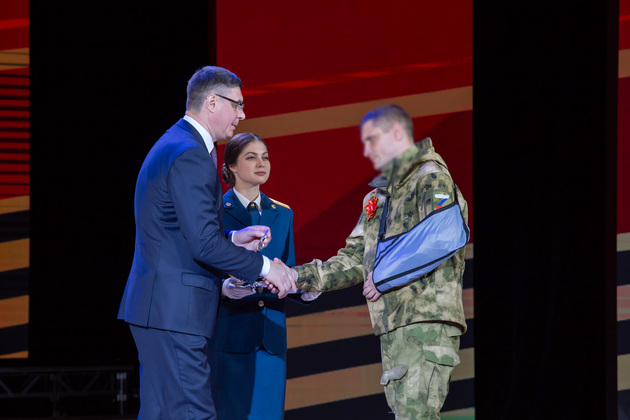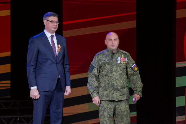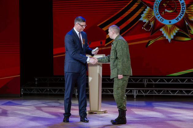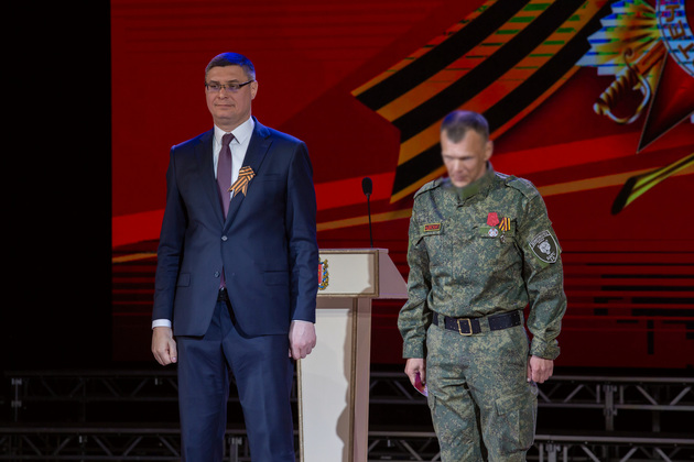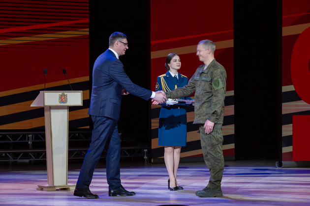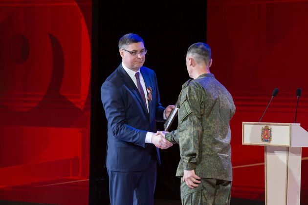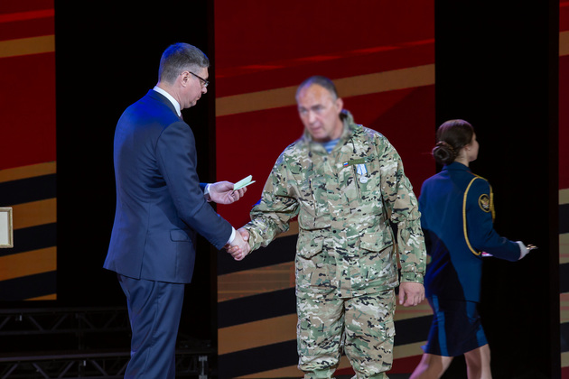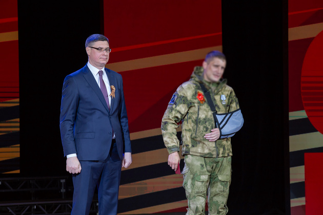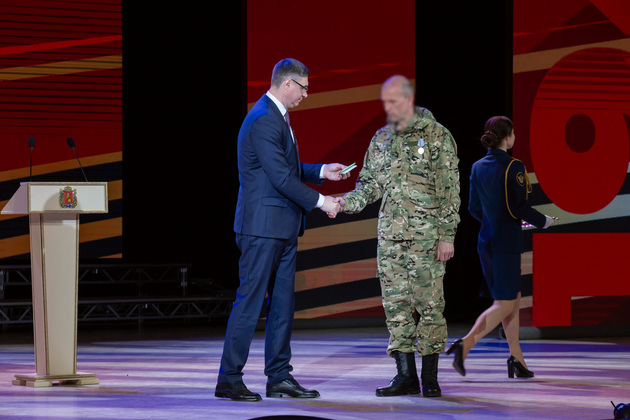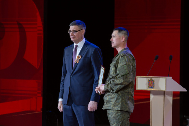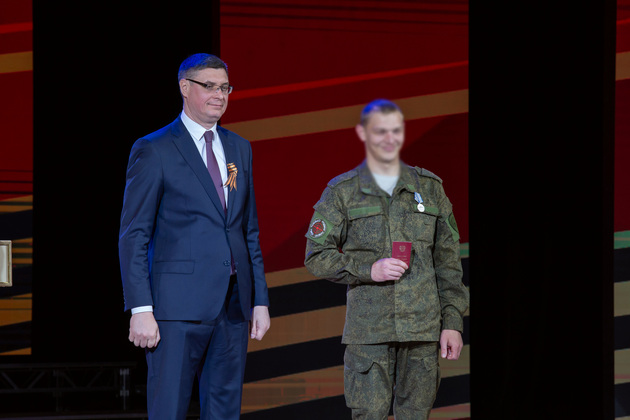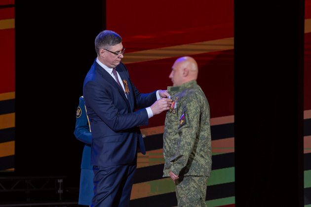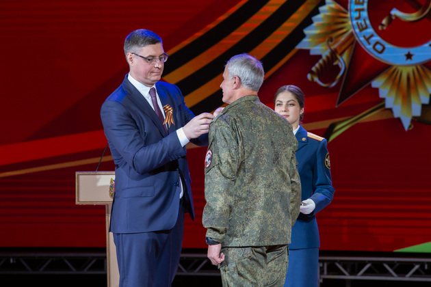 Глава области поблагодарил всех присутствовавших ветеранов Великой Отечественной войны и участников СВО за их героизм и наградил медалями. За мужество, отвагу и самоотверженность, проявленные при исполнении гражданского долга, медалью ордена «За заслуги перед Отечеством» II степени были награждены участники СВО. Василий Кузьмичёв, Роман Павлов и Олег Сарамуд отправились на Украину в составе добровольческого отряда «Барс». За личное мужество и отвагу, проявленные при защите Отечества и исполнении воинского долга, медалью «За отвагу» награждены военнослужащие 346-го мотострелкового полка Александр Жуков, Алексей Игошин, Дмитрий Мурыгин, Артём Резниченко, Алексей Забалуев, Олег Чах и Дмитрий Карев.