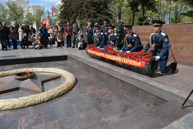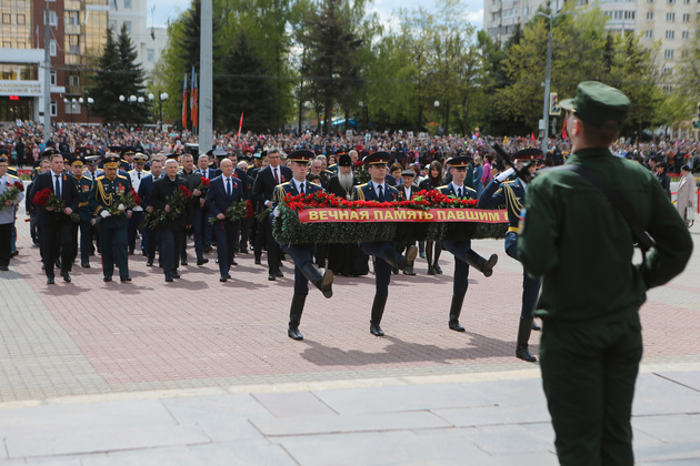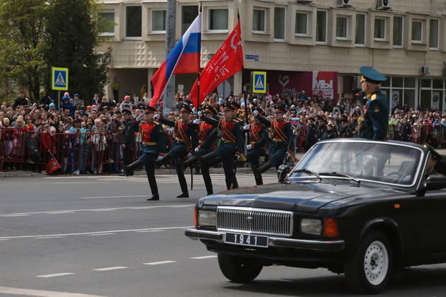 Закончился Парад Победы церемонией возложения мемориальной гирлянды, венков и цветов к Вечному огню. Как сообщила мэрия Владимира, в утренних торжественных мероприятиях приняли участие свыше 24 тысяч владимирцев.