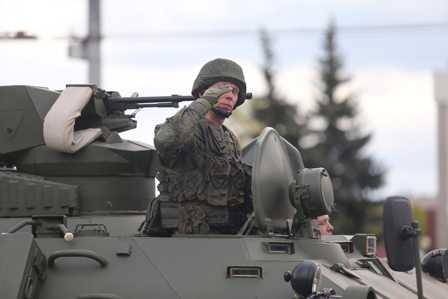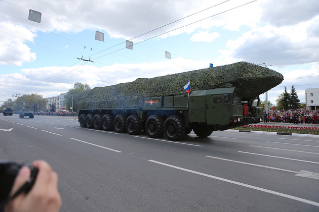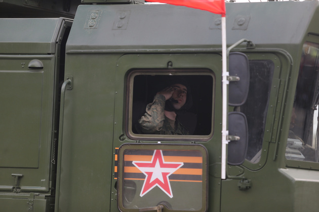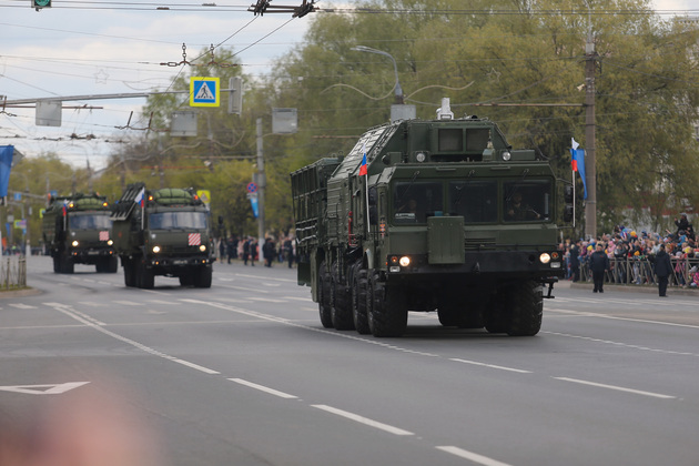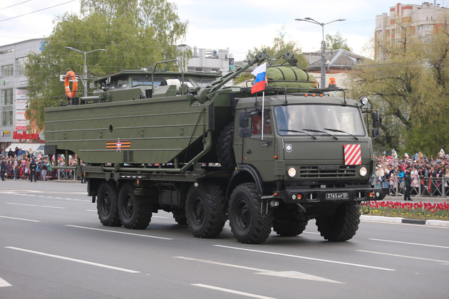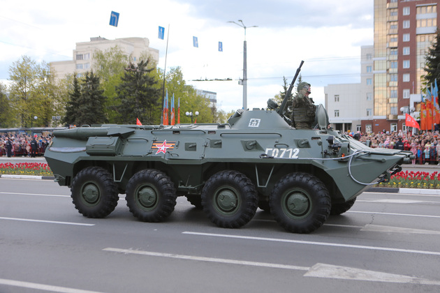 А затем личный состав сменила механизированная колонна боевой и специальной военной техники, состоящая на вооружении Российской армии. Это техника обеспечения боевого дежурства и маневренных действий РВСН, ракетный комплекс «Ярс», противодиверсионные машины БТР-82 «Тайфун», специальная техника для оперативного наведения понтонных переправ и обеспечения маневренных действий войск.