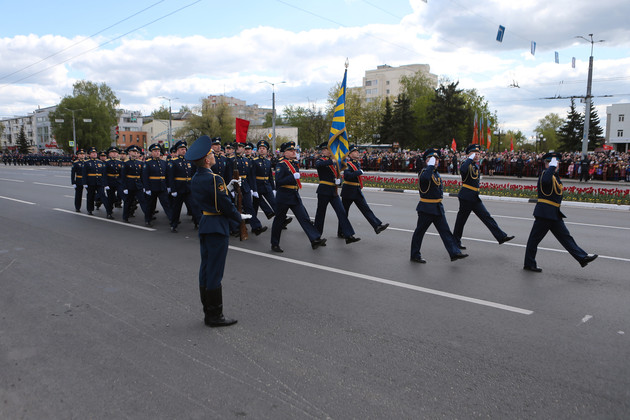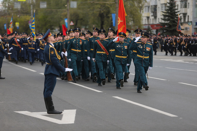 Торжественным маршем прошлись военнослужащие Ракетных войск стратегического назначения, военные летчики авиационной эскадрильи 33-го полка, личный состав центра подготовки специалистов расчетов радиотехнических войск Военной академии воздушно-космической обороны имени Г.К. Жукова, личный состав Управления внутренних дел России по Владимирской области, сотрудники Главного управления МЧС России по Владимирской области, регионального управления Федеральной службы исполнения наказаний, офицеры и курсанты Владимирского юридического института ФСИН России, воспитанники кадетской школы-интерната им. Дмитрия Пожарского, сводный отряд Всероссийского военно-патриотического общественного движения «Юнармия».