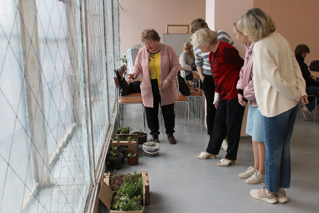 Начальник отдела семеноводства Яна Балахнина передала педагогам и их воспитанникам лилии, лилейники, очитки, хосты, молодило и пряные травы.