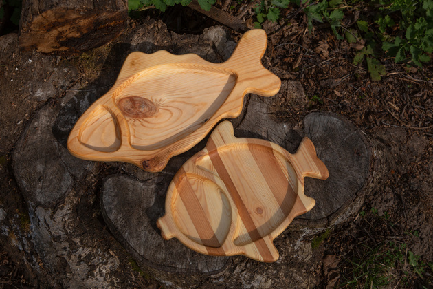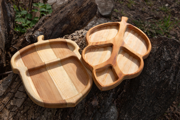 - Разделочные доски, менажницы, подносы и многое другое. В день я могу сделать около трех изделий. Еще одно направление - заливка изделий эпоксидной смолой - специальной, густой, для заливок глубиной до полсантиметра. Смола естественным образом застывает за девять часов. Но смола - довольно дорогой материал. К примеру, сделать столешницу на кухню обойдется в сумму (с материалом) порядка 50 тысяч рублей, ведь там большой расход смолы. Хотим попробовать изготовить небольшие столики: задействовать жидкую смолу, ее полимеризация - до семи суток. Сушильные камеры не рекомендуют использовать для смолы, так как появляются пузырьки, если они останутся и лопнут, то образуются кратеры. Еще игрушки елочные пробовали делать, их тоже заливала эпоксидкой. Работа очень кропотливая, затратная по времени, сезонная. Не прижились, привыкли у нас к шарам. Подсвечники изготавливаем в старинном стиле - по спецзаказу в Москву отправляла. Мои менажницы даже в Краснодар уезжали и соседние области. Недовольных клиентов не было. Очень щепетильно отношусь к этому. Это же дерево. Берешь сухую древесину, а она внутри чуть-чуть не досохла, и может дать трещинку. Я всегда говорю, если что-то не так, приносите - поправим. Дерево - это живой материал.