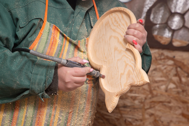 - Фрезеровка в зависимости от изделия - от 20 до 40 минут. Шлифовка - дольше всего. Бывает около часа уходит на то, чтобы довести работу до идеального состояния. В общей сложности - 2-2,5 часа на одно изделие, а после шлифовки хорошенько вычищаю щеткой от пыли и обрабатываю. Например, маслом с вазелином - самый простой вариант, водоотталкивающий. Еще варим специальную смесь, в основе которой воск пчелиный с добавлением льняного масла. Однако у людей бывает аллергия на пчелопроизводство. Поэтому, в основном, используем вазелиновое масло. Лаком можно тоже покрыть, но нежелательно, ведь это же посуда. Разделочные доски только вазелиновым маслом смазываем.
