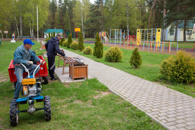Перед началом летнего оздоровительного сезона работы в лагере идут полным ходом. К часу икс нужно успеть всё – закончить ремонт столовой, скосить траву, привести в порядок бассейн под открытым небом, провести влажную уборку в жилых корпусах, высадить цветочную рассаду в клумбы.