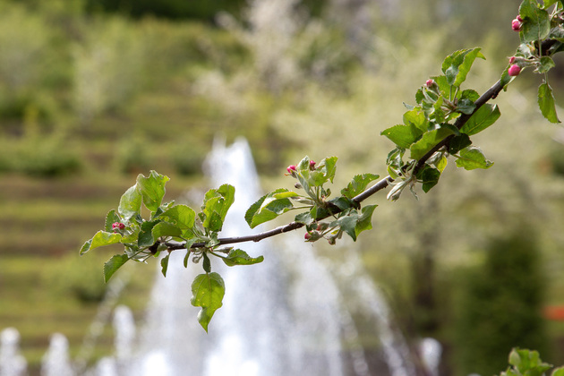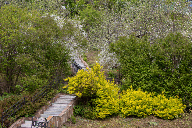 Ну а цветение в Патриаршем саду продолжается. После яблони и вишни придет черед сирени, а затем будут радовать глаз ирисы, пионы, лилии. «Зеленая коллекция» сада насчитывает около 1500 видов растений. Здесь всегда что-то цветет, даже зимой. Когда за окном морозы, в оранжерее благоухают бугенвиллея, спатифиллум, клеродендрум и другие экзоты. А сейчас цветут антуриум, якобиния и жасмин.