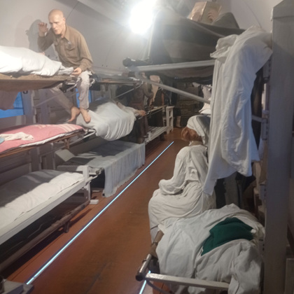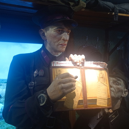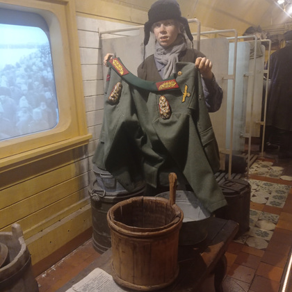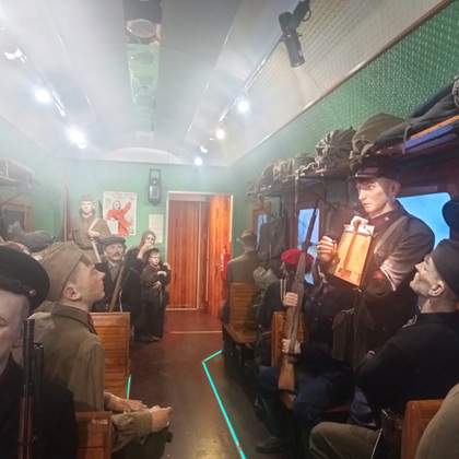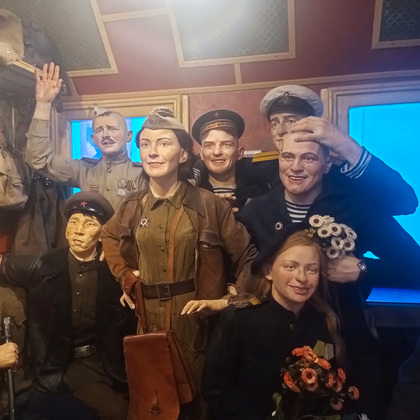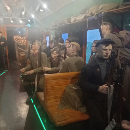 «Поезд Победы» впервые был запущен в 2020 году к 75-летию Великой Победы. Во Владимире сегодня его встречали волонтеры, ветераны, молодежь, все те, кто интересуется историей и хочет больше знать о Великой Отечественной войне. Было приятно видеть много молодежи, на которую в большой мере и ориентирована выставка, состоящая из тематических инсталляций. Каждый вагон – новый зал, в котором представлены фотодокументы, скульптурные группы, видеостены и тач-столы на заданную тему. Начало войны, мобилизация, фронтовая жизнь, работа госпиталя, партизанское подполье, - везде образы военной поры передаются через визуальное искусство, звуковые и световые эффекты. Образы, созданные организаторами, поражают своей реалистичностью. Есть и очень тяжелые темы, такие как – концлагерь. Этот вагон-экспозиция имеет возрастное ограничение - +12.