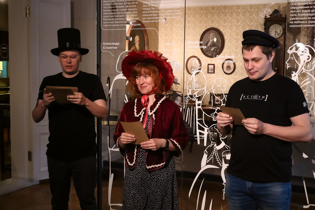 – Мы погрузимся в атмосферу 19 века. Создание антуража – очень важная часть. Например, наши коллеги в Озерске делали иммерсивный спектакль в доме-музее Курчатова. У него был отдельный домик, его сохранили, и именно в нем и проходил спектакль. В местном Доме культуры также есть спектакль по Курчатову (классическая постановка – прав. Ред.), – подытожила Фельдман и пригласила нас в первый зал, где представили сцену «Дневники».