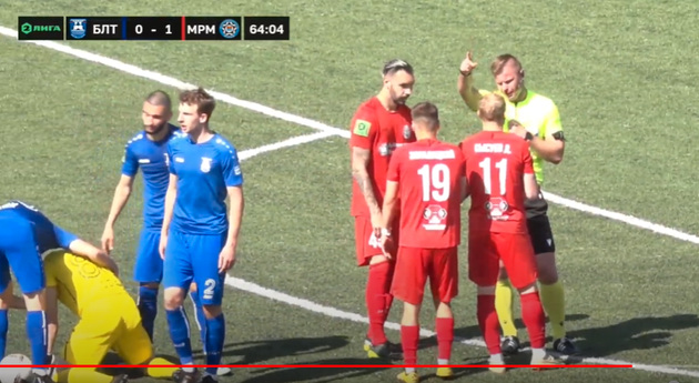Во втором тайме «Балтика-БФУ» постаралась уйти от поражения. И, казалось, получила такой «подарок» на 65-й минуте: получил вторую желтую карточку (судя по всему, за то, что задел в атаке вратаря) защитник «Мурома» Сергей Запалацкий. И судья его удалил.