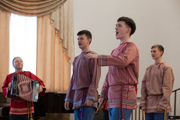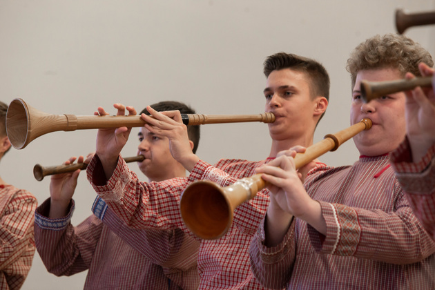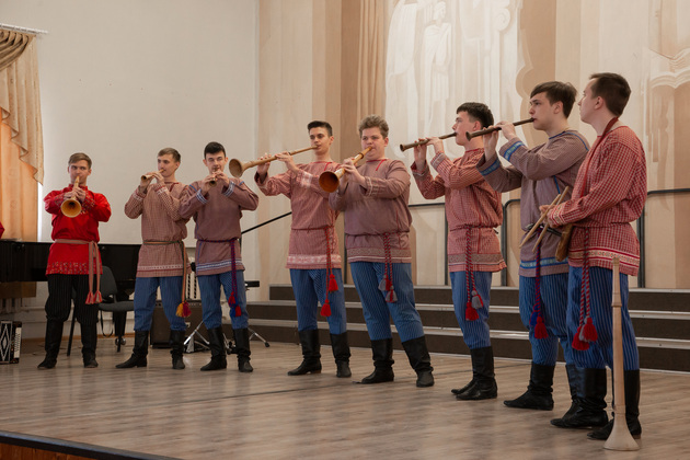 И, конечно, рожок в данном случае подразумевает не только игру на нем, но и самобытный народный вокал. Тем более что занимаются в «Ансамбле рожечников» как раз студенты специальности «Сольное и хоровое народное пение». Впрочем, есть и участники из других отделений колледжа.