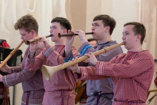 Вот так все тесно связно в современном искусстве владимирского рожка. На концерте удалось услышать очень многое из богатого репертуара обоих коллективов.