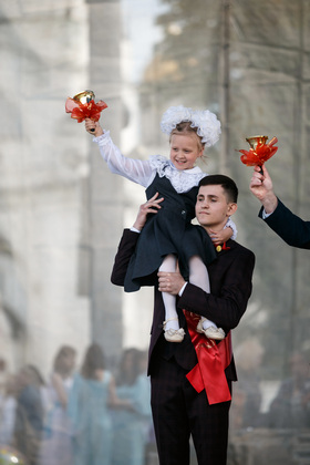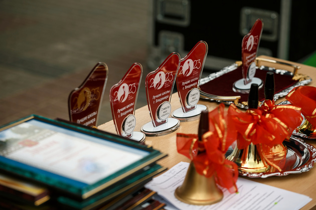 Официальную церемонию завершил последний звонок. Право его дать было предоставлено выпускнику гимназии №35 Владиславу Парфенову. Школьник –стипендиат премии «Надежда земли Владимирской» в области образования и науки как молодой исследователь в области социально-экономических и гуманитарных наук», победитель муниципального и регионального этапов телевизионной гуманитарной олимпиады «Умники и умницы Всероссийской олимпиады школьников по немецкому языку и участник федерального этапа олимпиады. Помогала Владиславу будущая первоклассница школы №44 Ева Кольнова.
