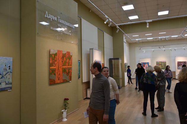 Более сотни работ на выставке памяти Дарьи Тимошкиной отражают все этапы ее творчества. Знатоки отмечают, что творческое становление художницы проходило под влиянием владимирской школы живописи. Ценители обращают внимание на необыкновенные сюжеты городских пейзажей и натюрмортов Дарьи Тимошкиной, передающих зрителю атмосферу философских размышлений автора. Главные ее темы - просторы русской земли, деревенские домики, жизнь простых людей, времена года.
