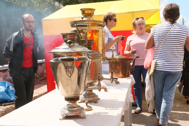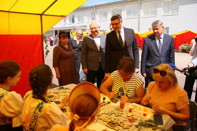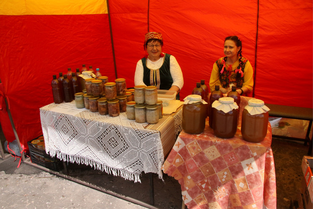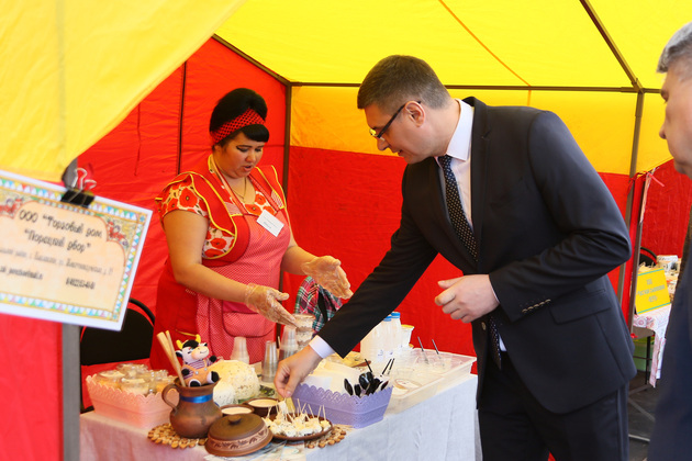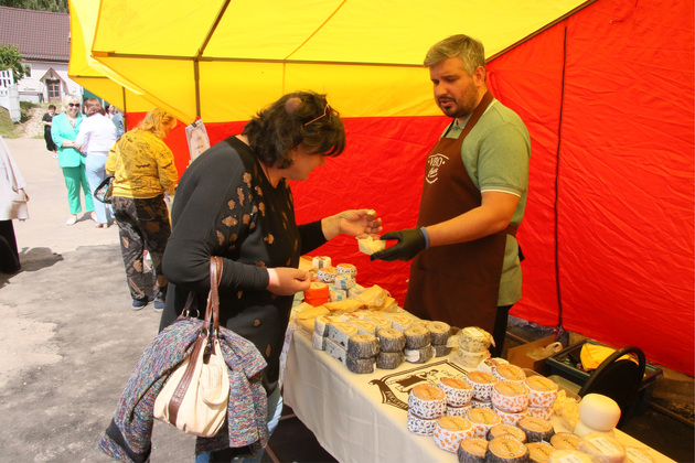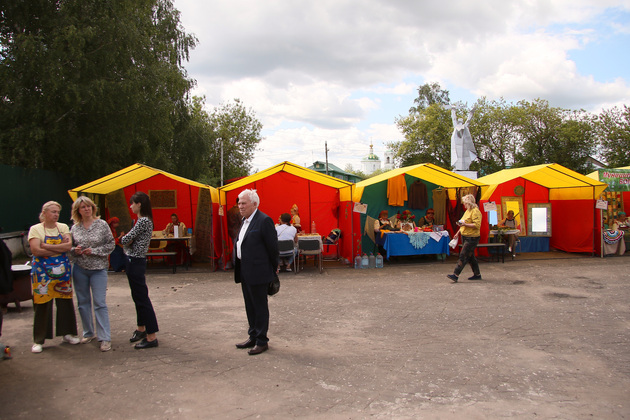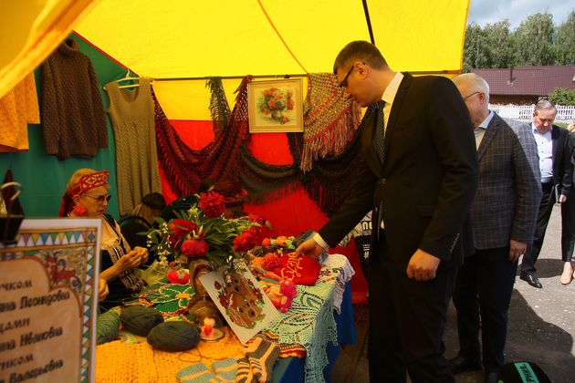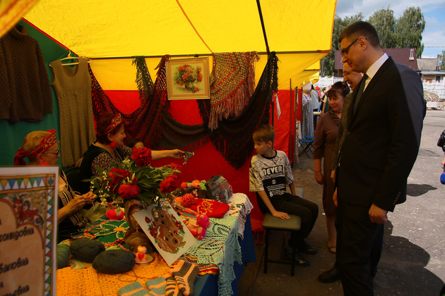 На площадке перед ДК развернулась ярмарка ремесел и фермерской продукции. Каждый мог попробовать ароматную уху, сыры местного производства, блинчики с вареньем, ознакомится с народными художественными промыслами Суздальского района. Губернатор Александр Авдеев и члены оргкомитета осмотрели ярмарку и продегустировали фермерскую продукцию.