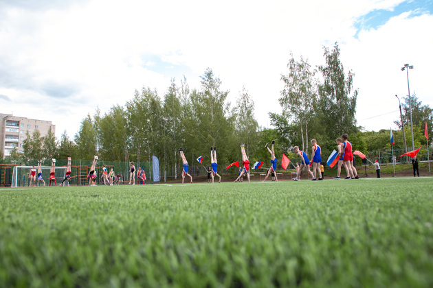 Теперь в Юрьевце появился целый спорткомплекс под открытым небом: искусственное футбольное поле, площадка для волейбола и баскетбола, беговые дорожки, различные снаряды для воркаута, силовые тренажеры, трибуны для зрителей под «козырьком», система видеоконтроля для безопасности и прочее.
