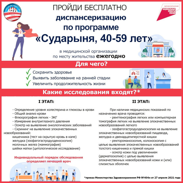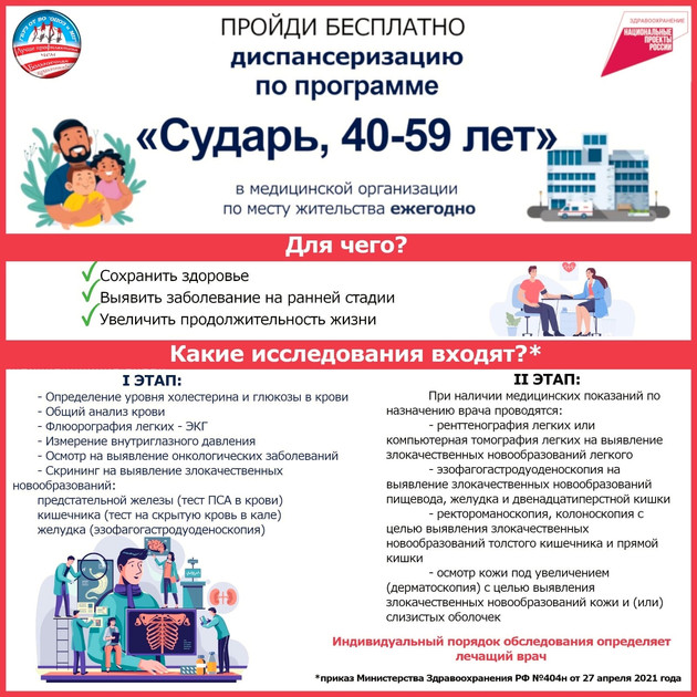 Министерство здравоохранения Владимирской области предупреждает жителей нашего региона о важности прохождения диспансеризации в возрасте от 40 до 60 лет. Именно в этот период возрастает вероятность развития сердечно-сосудистых заболеваний, диабета и онкологии.