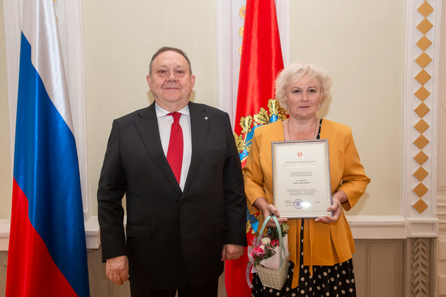Во Владимирской области в системе социальной защиты работает более 5,5 специалистов. Сегодня самые лучшие работники получили почётные грамоты. За многолетний добросовестный труд в системе социальной защиты населения почётной грамотой Правительства Владимирской области наградили специалиста по социальной работе Вязниковского комплексного центра социального обслуживания населения Любовь Кобзаренко, инструктора по труду Гороховецкого социально-реабилитационного несовершеннолетних Наталью Лебедеву, специалиста по социальной работе Александровского комплексного центра социального обслуживания населения Наталью Савенкову.