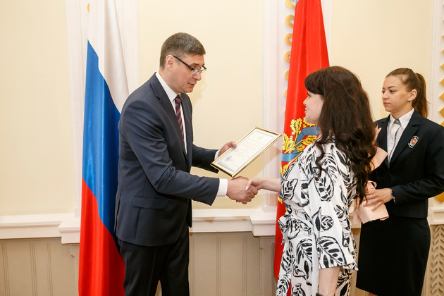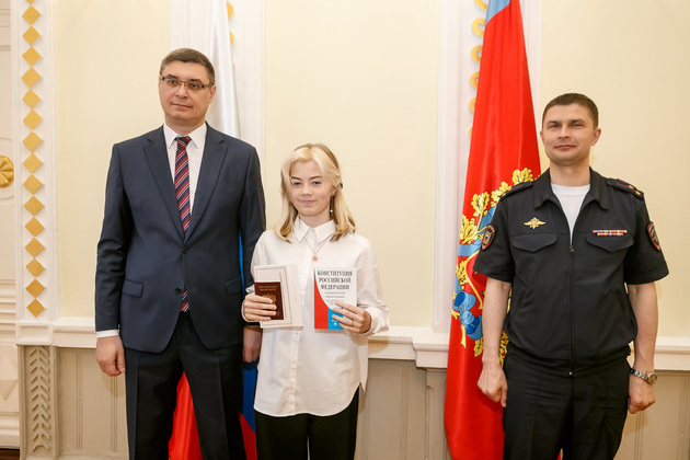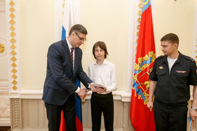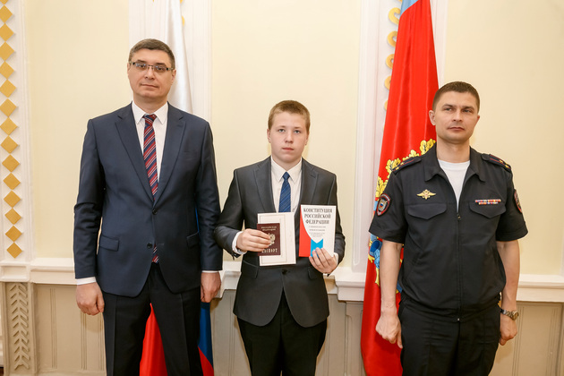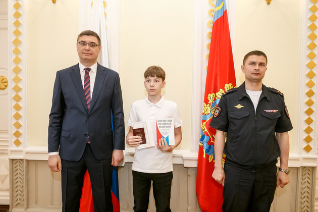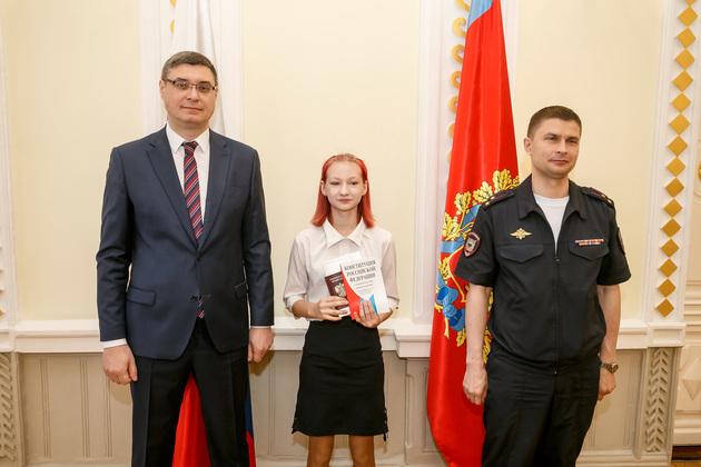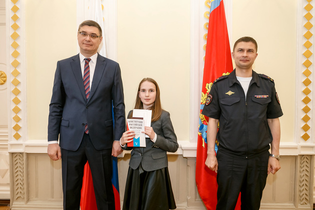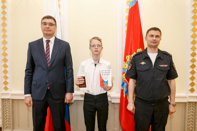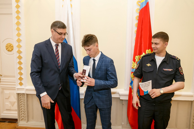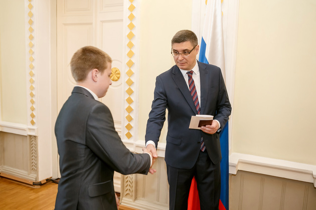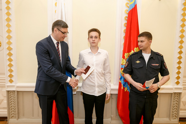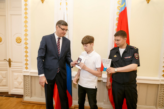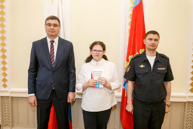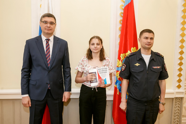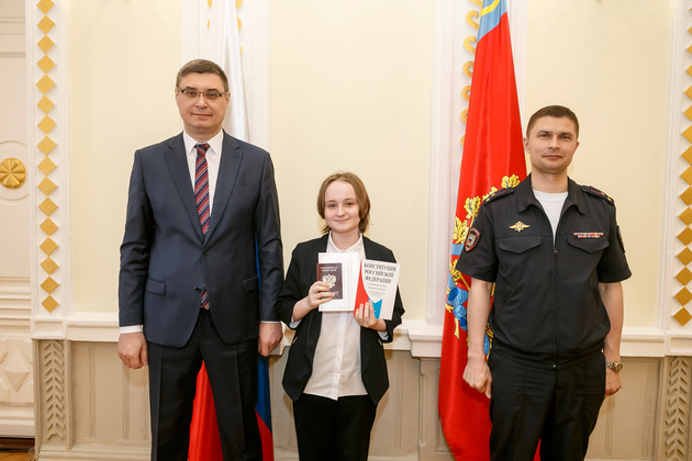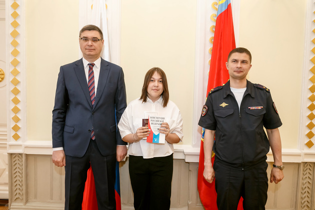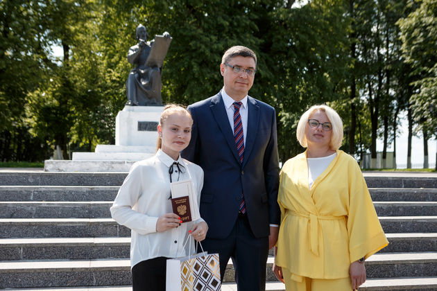 В преддверии Дня России губернатор Александр Авдеев вручил паспорта 14-летним ребятам, проявившим себя в учёбе, спорте и творчестве. Главный документ гражданина РФ из рук губернатора получили 29 школьников.