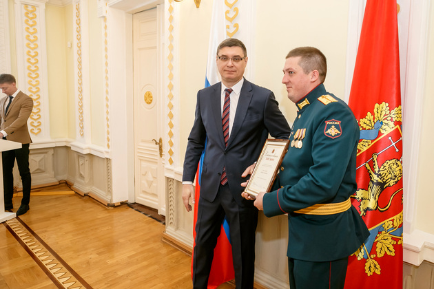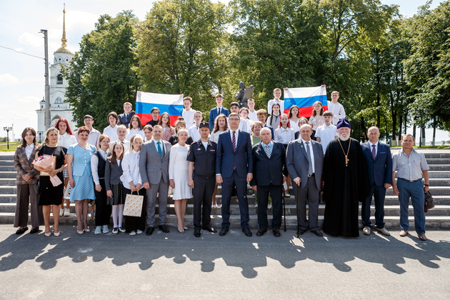 - Патриотизм для всех нас – это не про лозунги, это про чувства и поступки. Сейчас, в непростое, рубежное для нашей страны и мира время, так много граждан России показывают это своим примером. За участие в специальной военной операции ряд жителей Владимирской области удостоен звания Герой России, десятки человек награждены Орденом Мужества. Подвиг защитников Родины – это наивысшее проявление патриотизма. Любовь к Отечеству проявляется и в воинской службе, труде, достижениях научной мысли, творчестве, спортивных победах, милосердии по отношению к ближнему. Жители Владимирской области сильны во всём. У нас развитое добровольческое движение, многие наши земляки участвуют в сборе помощи новым регионам России, подшефному городу Докучаевску в ДНР, защитникам Родины. В числе награждаемых сегодня – волонтёр-медик Мария Бодякова, она помогала нашим бойцам на фронте. Всё это патриотизм в действии. Друзья! Пока мы верны идеалам наших предков, чувствуем наше единство, поддерживаем друг друга, работаем, чтобы процветала наша страна, – Россию не сломить, не ослабить, не победить. Вместе мы – команда, преумножающая мощь и славу родного Отечества, – подчеркнул Александр Авдеев.