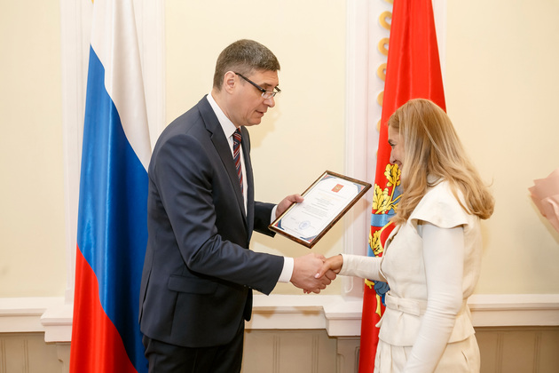 За большой вклад в подготовку и проведение Года культурного наследия народностей России наградили Оксану Зорину, директора государственного автономного учреждения культуры «Областной Центр народного творчества».