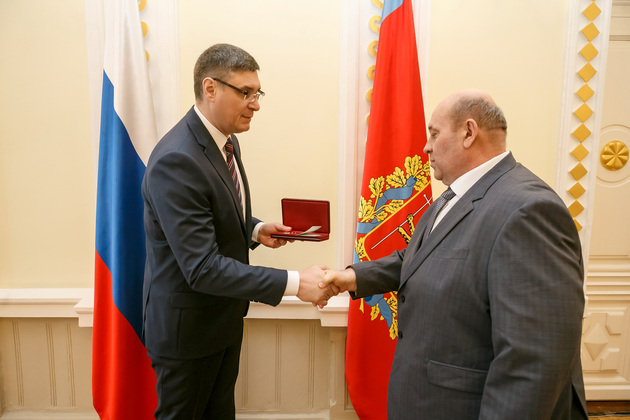 Глава региона вручил государственные награды жителям области. Указом Президента РФ за заслуги в области здравоохранения и многолетнюю добросовестную работу медали Луки Крымского удостоен Михаил Волосов, директор специализированного лечебно-профилактического учреждения «Санаторий имени Абельмана».