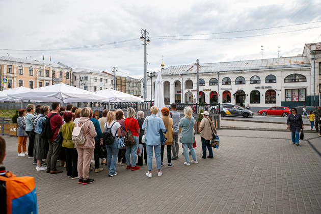 – До 1787 года торговые ряды были деревянными, весьма обветшавшими, поэтому их решили перестроить в камне, – продолжает Татьяна. – Одно дело решить, а другое – выполнить. У городских властей денег на перестройку не нашлось. Купцы и лавочники получили ультимативное извещение. Хотите торговать на бойком месте – сбрасывайтесь по 200 рублей на строительство. Не хотите? Ищите себе другое место. И полсотни торговцев сбросились! Этого хватило, чтобы построить южный ряд торговых рядов, восточный и западный, а через несколько лет пристроили и северные ряды, – просвещает удивленную публику экскурсовод.