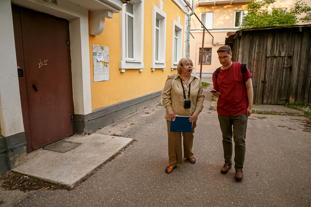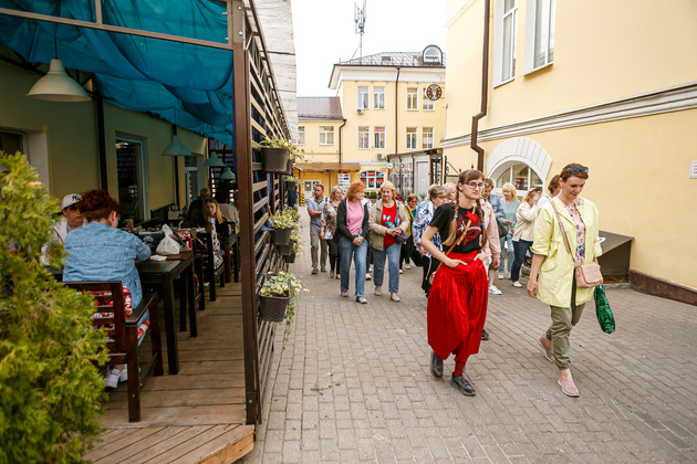 – Обратите внимание на большие сводчатые окна первого этажа. Изначально это были двери в лавки. То есть первый этаж, как вы догадываетесь, купцы сдавали под лавки, а второй этаж и мансарду – под постоялый двор и квартиры в аренду. В середине XIX века Петровский продал южную часть дома другому купцу - Козлову, и тот получил разрешение на перестройку. Он вместо мансарды надстраивает третий этаж, поэтому дом предстает сейчас в таком странном виде. Часть двухэтажная, а другая часть – с тремя этажами. А в советское время этот дом и вовсе поделили на два строения. Теперь это дома № 2 и № 4, – объясняет экскурсовод.