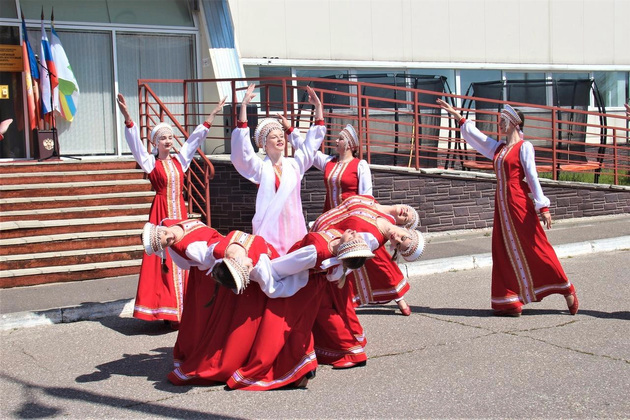У стелы боевой и трудовой славы и аллеи ветеранов провели яркий танцевальный флешмоб «Флаги России».