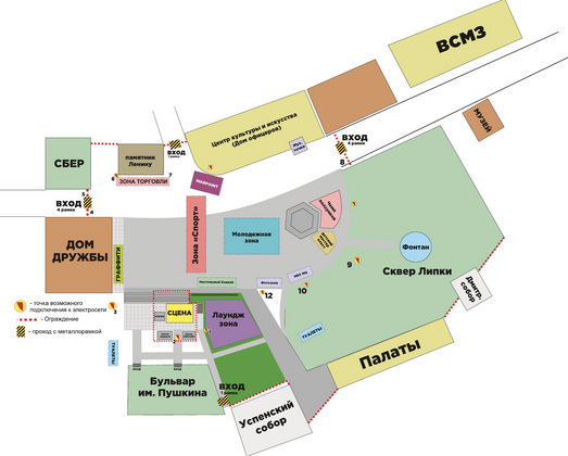 Для гостей будут организована спортивная зона, настольных игр, а также площадки «Молодые семьи», «Молодежная зона», «Лаундж», мастер-классы по граффити, брейкданс, образовательная площадка и многое другое. Для маленьких владимирцев подготовили развивающие площадки, где расскажут о правилах безопасности в летний период. Самые активные участники интерактивных программ получат эксклюзивные подарки.