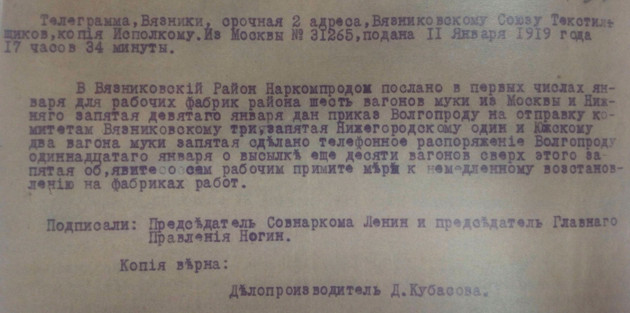 Искать решение пришлось руководству большевиков, включая самого Ленина. Центр решил все-таки изыскать в скудных резервах и послать несколько вагонов хлеба для вязниковских рабочих.