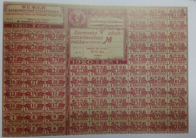 Дефицит в ходе затянувшейся мировой войны начался еще при царе. Карточки на покупку товаров первой необходимости по определенным нормам в лавках во Владимирской губернии ввели еще в 1916 году. После революции ситуация с продовольствием только ухудшалась.