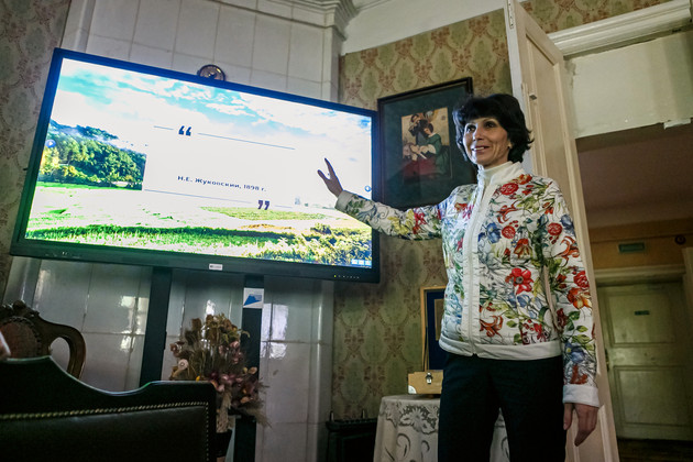 Например, в музее установлены интерактивные сенсорные панели со специальным программным обеспечением, с помощью которых можно самому выбирать интересующие разделы. Хотите – почитайте об истории усадьбы или об истории развития авиации, или посмотрите фильм, посвященный Николаю Егоровичу. Здесь же – фотогалерея, исторические справки, модель самолета в формате 3D и множество другой интересной информации.