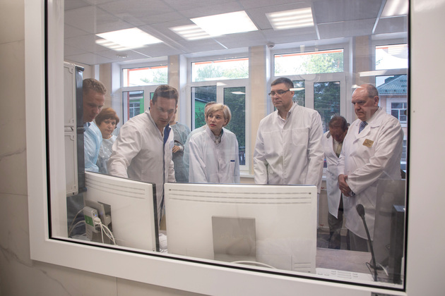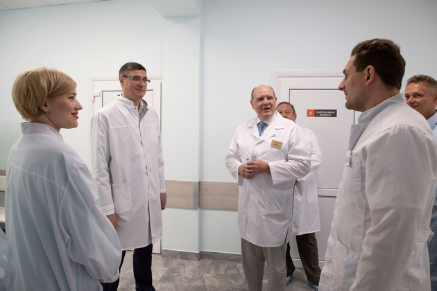 Глава региона осмотрел новое структурное подразделение районной больницы вместе со своим заместителем Константином Барановым и главным врачом Александровской районной больницы Валерием Яниным.