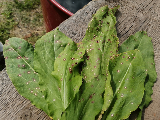 – Заболевание вредоносное, так как резко снижает вкусовые качества. Проявляется на листьях щавеля в виде мелких, сначала неопределенных по форме, позже округлых светло-бурых пятен с резким тонким пурпурным окаймлением, заметным с обеих сторон листа. На пятнах с нижней стороны листьев, особенно во влажную погоду, проявляется беловатый налет – спороношение гриба, - уточнила эксперт.