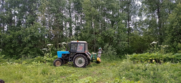 - Наша практика и практика работы наших белорусских коллег показывает, что обработка гербицидами и многократное окашивание помогает освободить земельные участки от засилия борщевика. Важно, не дать ему выйти в цвет и не допустить вызревания семян. Этим мы сейчас и занимаемся. Очень надеемся что все наши меры приведут к его полному удалению, - сказал он.