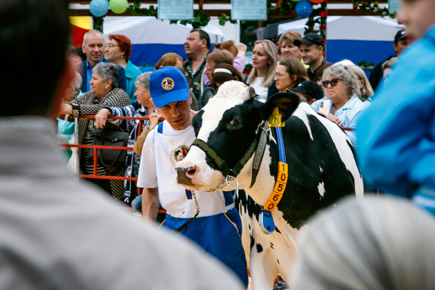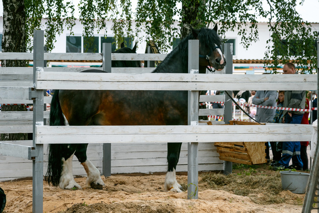 Репортаж о том, чем удивляли гостей выставки в 2022 году можно почитать здесь. На прошлой выставке демонстрировали самых красивых коров (для них даже конкурс красоты в специальном манеже устроили), телят, баранов, овец, коз, кур, гусей, перепелок и наших хороших знакомых — звезд конюшни имени Фомина, племенных жеребцов-тяжеловозов. Кроме того, на выставку приехали владимирские рыбоводческие хозяйства, поставщики техники, ветеринарных препаратов и всевозможного семенного материала.