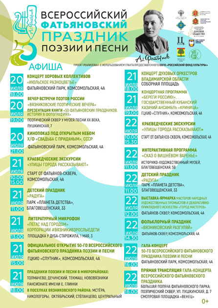 Традиционно мероприятия Всероссийского Фатьяновского праздника поэзии и песни будут проходить в Вязниках, на малой родине поэта Алексея Фатьянова.
