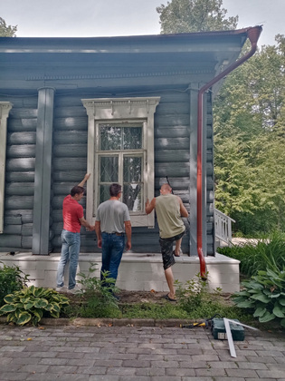В рамках нацпроекта “Культура”, а также при софинанасировании бюджетов разных уровней в нынешнем году в памятнике градостроительства и архитектуры регионального значения – «Усадебном доме Танеевых, XIX в.» будут проведены работы по смене наличников и столярных заполнений оконных проёмов. Оконные рамы тут тоже рассохлись, перекосились, кое-где нет и стекол.