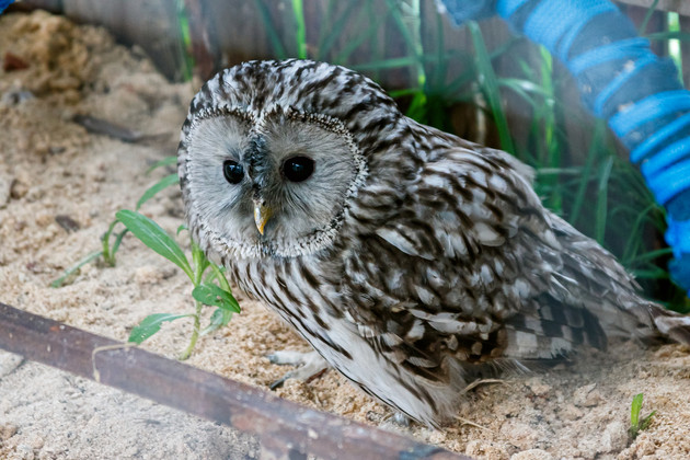 Зоозащитница показала мне питомцев орнитария, которые прошли адаптацию для содержания в неволе. Знакомьтесь: неясыть по имени Артемида. Это птица из семейства совиных. У нее был перелом тазобедренного сустава, но кости срослись неправильно. Птица потеряла способность летать. В таком состоянии ее нашла в своем огороде одна пожилая женщина.