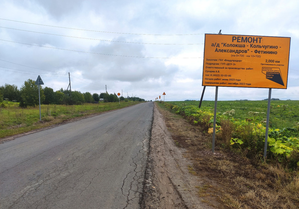 В Собинском районе идет ремонт дороги от Колокши до Фетинино. Она проходит через два райцентра - Кольчугино и Александров. Здесь обновят полностью двухкилометровый участок дороги.