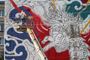 Вторая точка – улица Алябьева, 23. На фасаде дома мы увидели огромную абстракцию. По задумке Алексея Besto в его эскизе можно увидеть мотивы мстерской вышивки, которой славится Владимирская область. «Картинка не несет глубокого смысла, все держится на эстетике, симметрии и графических приемах», – резюмировал автор работы.