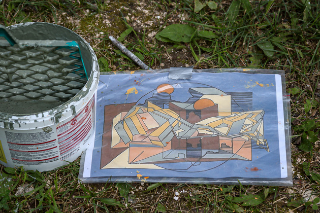 «Нет. Это композиция целиком. Называется «Закономерность», – прокомментировал нашу реакцию автор Андрей Ведро из города Балашиха. Изначально художник рисовал граффити и шрифтовые композиции. В арте фактически обыгран его псевдоним.