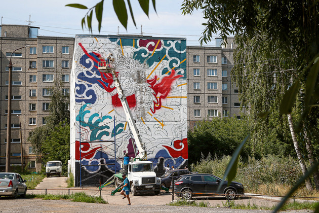 Это не первый опыт Андрея участия в фестивалях уличного искусства. В прошлом году он разрисовал 15-этажное здание в Подмосковье.