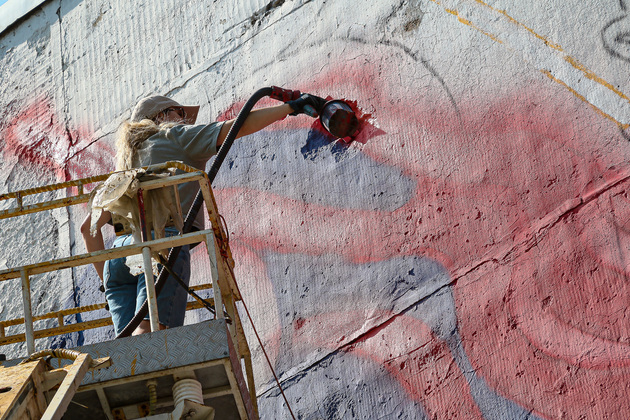 Что касается критериев отбора полотна для будущего стрит-арта, то самым лучшим вариантом считается грунтованная стена без окон, желательно не кирпичная. Так рисунок продержится дольше. Под создание Дракошки фасад пришлось немного ошкуривать и поработать шпателем, обычно подготовка лежит на плечах заказчика. «На такой фасад уйдет примерно четыре дня. Так как у нас два объекта, мы здесь закладывали плюс-минус дней 10. Очень от погоды зависит, мы не можем красить в дождь, когда солнце и влажность низкая – самое то», – резюмировала Анастасия.