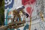 Творческий дуэт с необычным стилем. На улице Безыменского, 1г, встретили сразу дуэт художников – Анастасию Нан (город Москва) и Tweso. Фасад будет украшать неведомое существо Дракошка – (дракон + кошка). Работа имеет название «Сияние».
