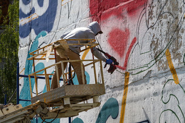 К слову, все работы, выполненные за предыдущие годы, сохранились. За муралами тщательно ухаживают: закрашивают надписи и реставрируют отвалившиеся части. Качественный стрит-арт способен продержаться не одно десятилетие.