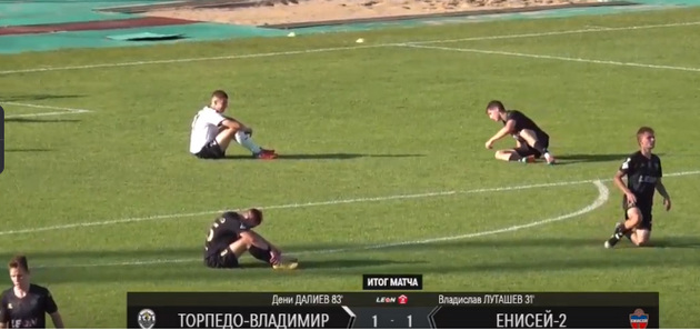 В первом тайме игры с «Енисеем-2», начавшейся в 16 часов, игроки особенно страдали от зноя. Однако гости из Сибири смотрелись на жаре на удивление резвыми. Гости и открыли счет в первом тайме. Защитник «Торпедо» по ошибке сбросил мяч прямо на ход капитану «Енисея-2» Владиславу Луташеву. И тот забил – 1:0.