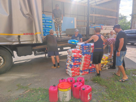 Отделочники из Владимирской области привезли в Докучаевск все, что необходимо для внутренних работ. Это сухие строительные смеси, штукатурка, шпатлевка, грунтовка, стяжка для пола, плиточный клей, шифер и прочее.